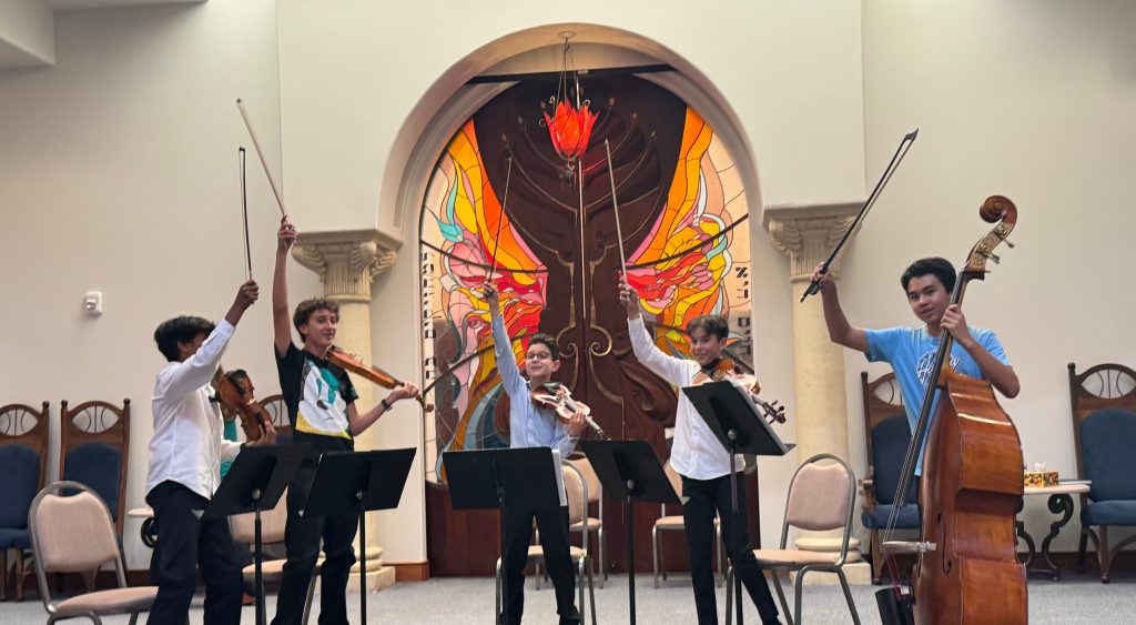 Mentorship is a cornerstone of MCM’s chamber music program and fuels our culture of growth and community. High school students mentor younger ensembles, providing leadership experience, and an opportunity to deepen their musical understanding by guiding rehearsals and articulating ideas. Younger students are inspired by older students, learning from their example, they develop ensemble skills and gain musical insight. Mentor programs such as Mosaic also look great on college applications as mentors gain confidence, compassion and strong interpersonal skills. Fostering a meaningful relationship between younger and older students builds a culture of service to each other and strengthens our music community.